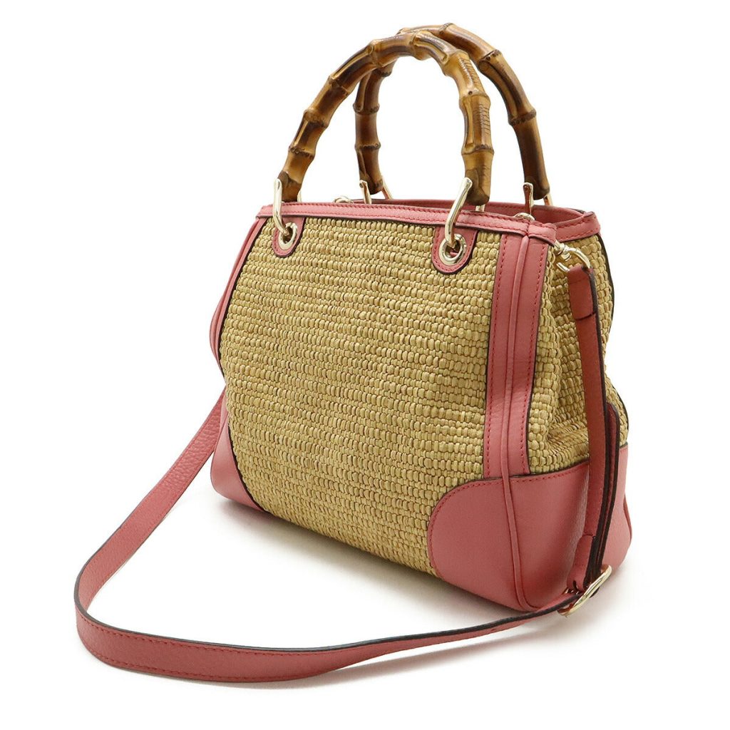 Gucci Bamboo Small Shopper Straw Leather 2way Handbag