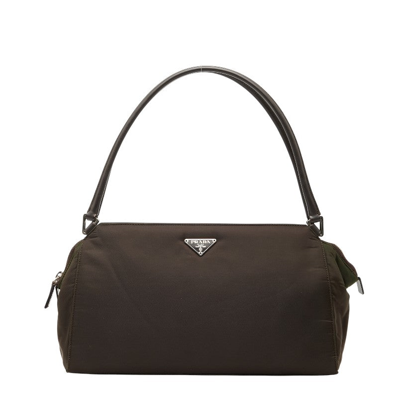 Prada Triangle Logo Nylon Leather Shoulder Bag