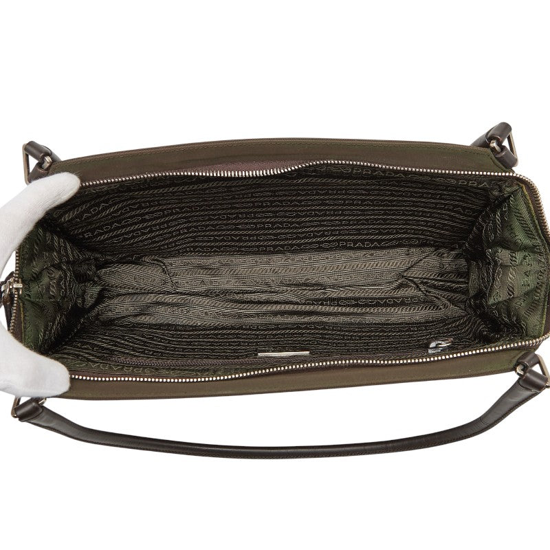 Prada Triangle Logo Nylon Leather Handbag