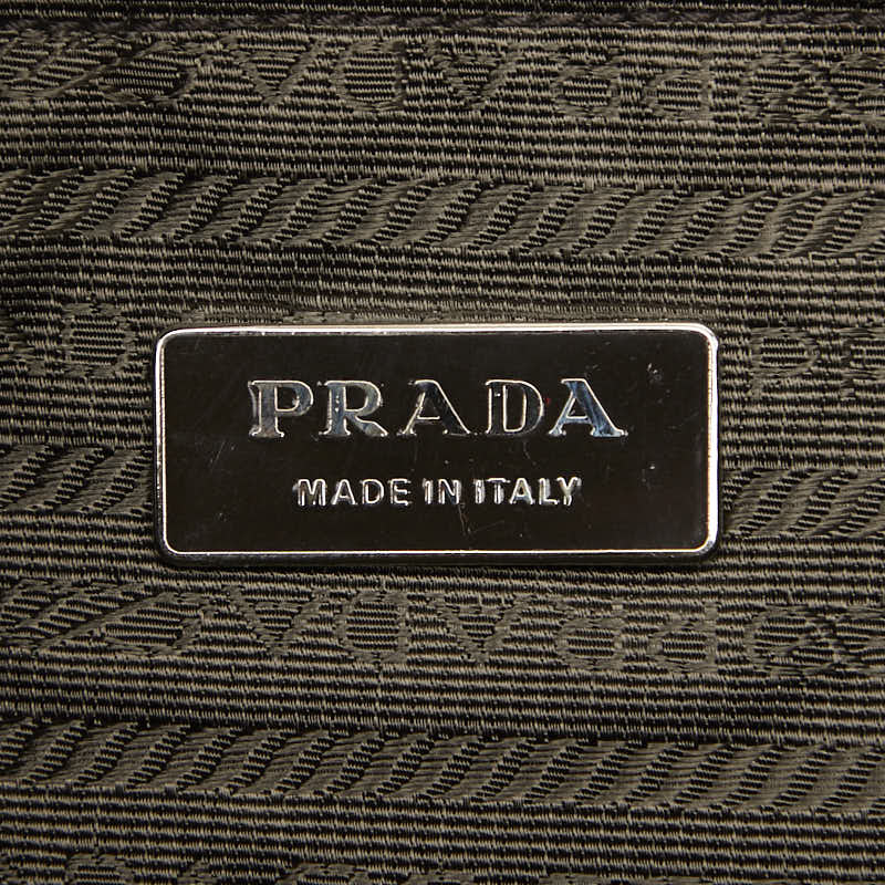 Prada Triangle Logo Plate Canvas Leather Shoulder Bag