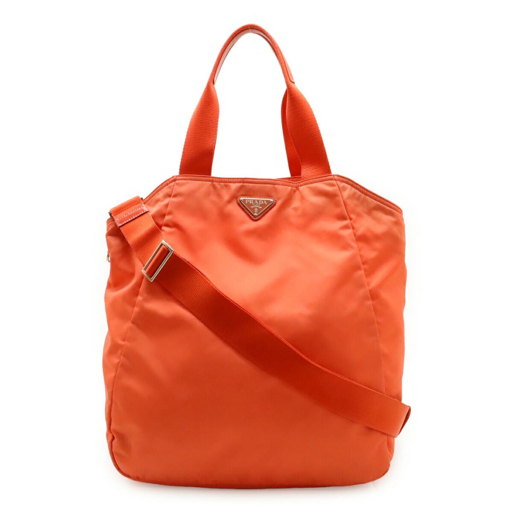 Prada Triangle Logo Nylon Leather 2way Tote Bag