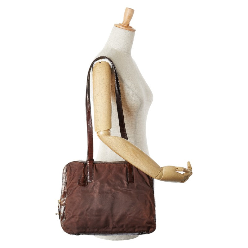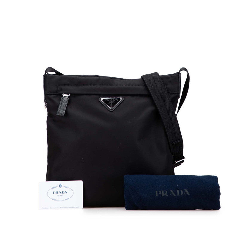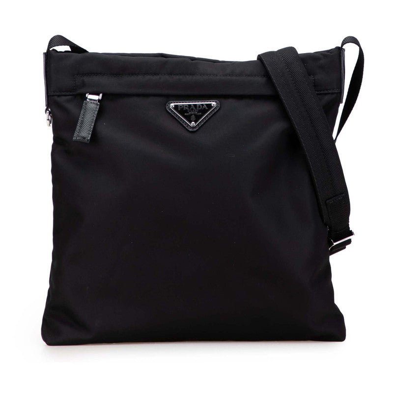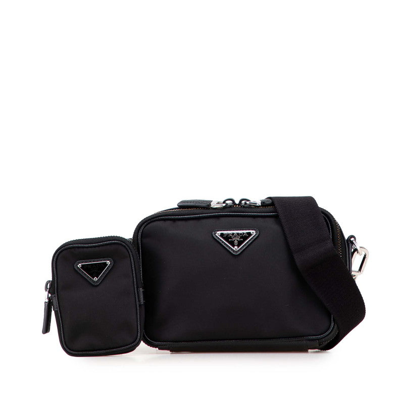 Prada Triangle Logo Plate Nylon Leather Shoulder Bag