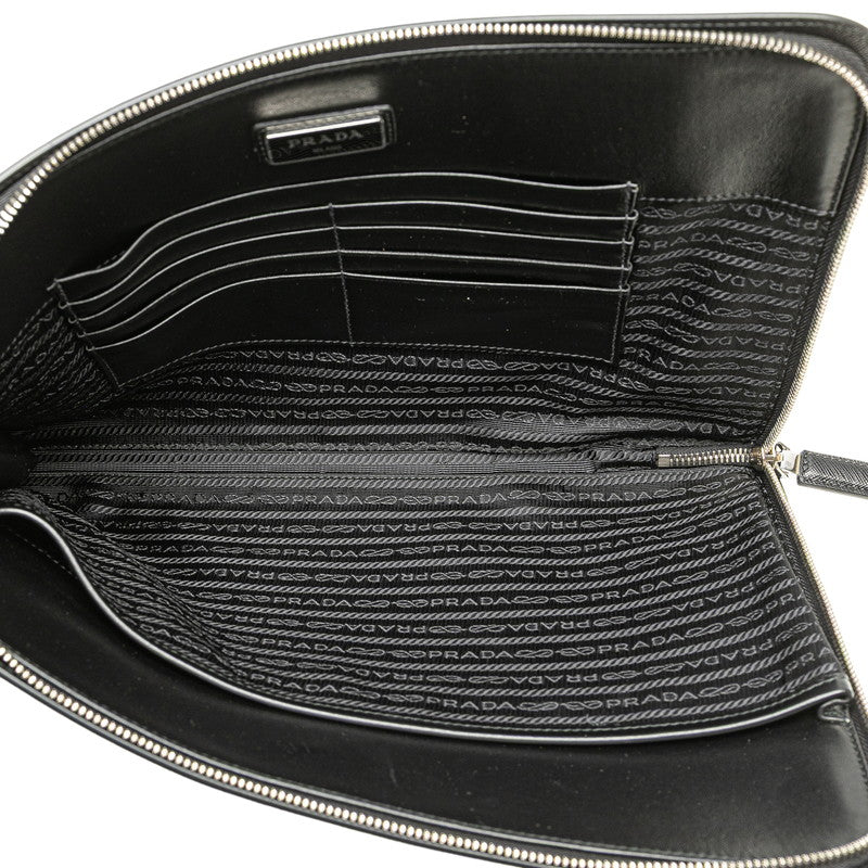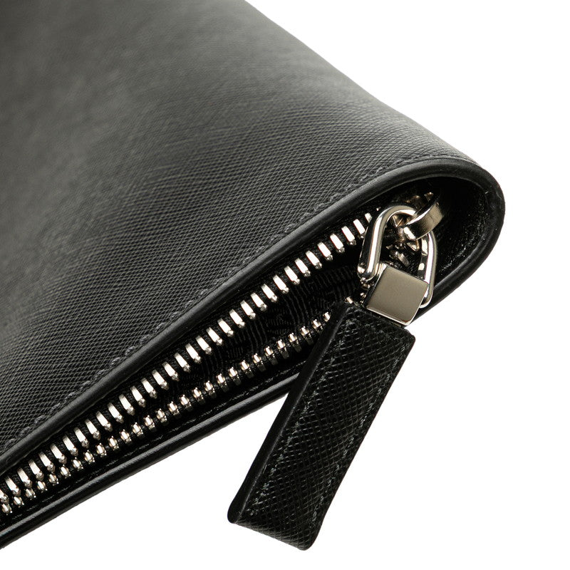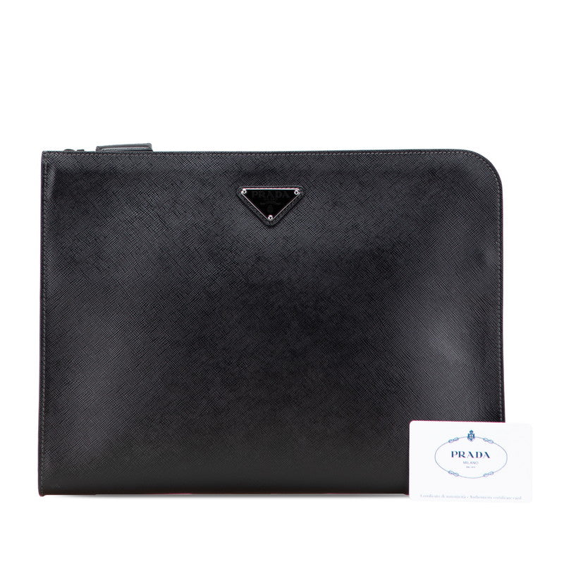 Prada Triangle Logo Plate Leather Clutch Bag