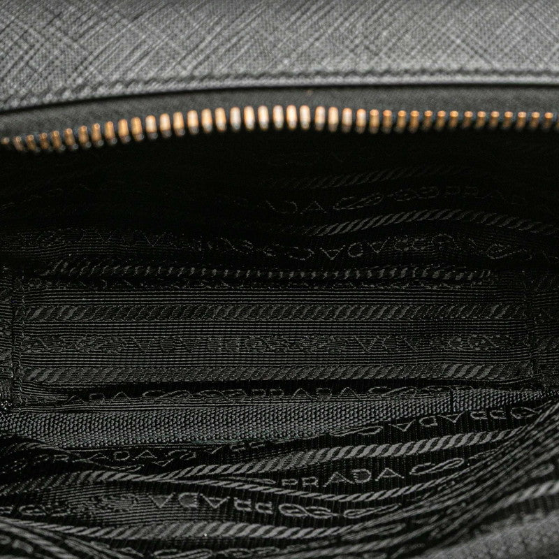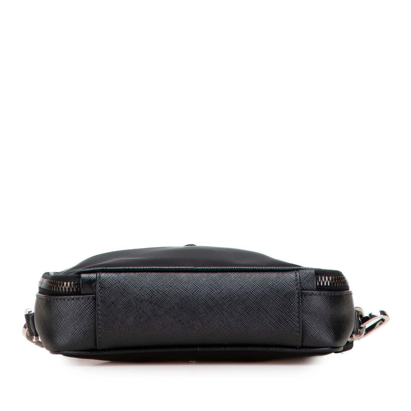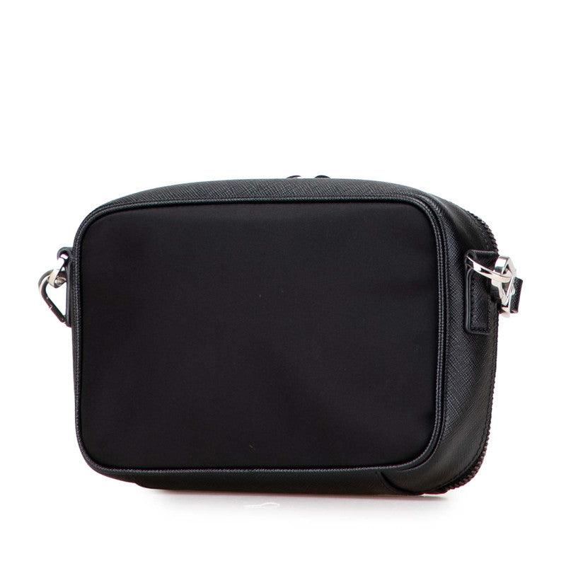 Prada Triangle Logo Plate Nylon Saffiano Leather Shoulder Bag