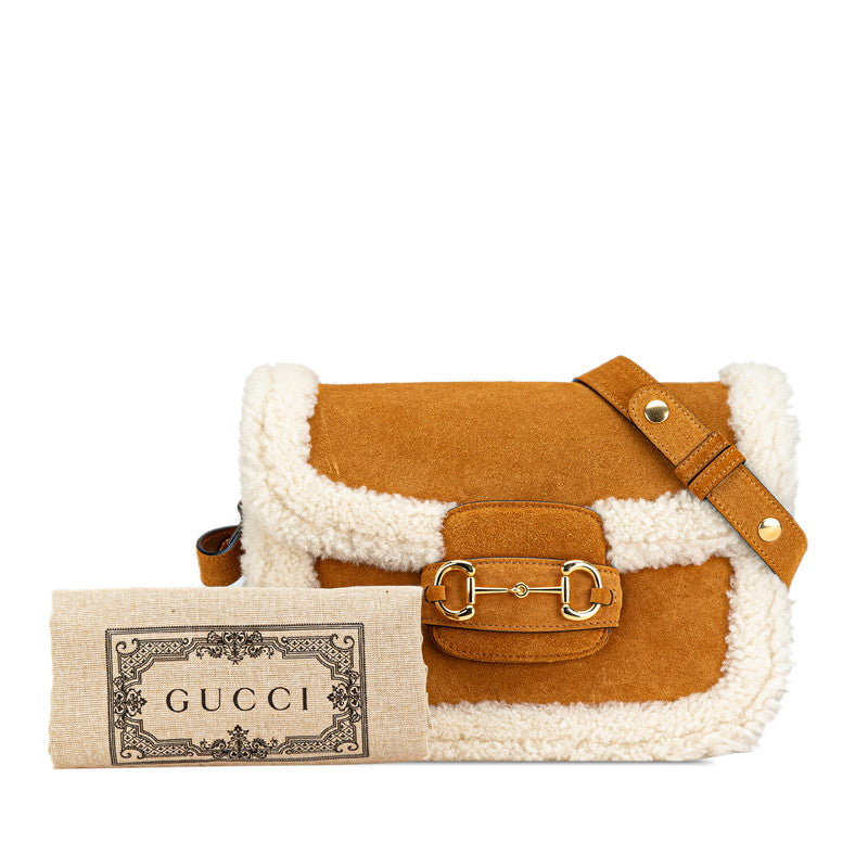 Gucci Horsebit 1955 Suede Shearling Shoulder Bag