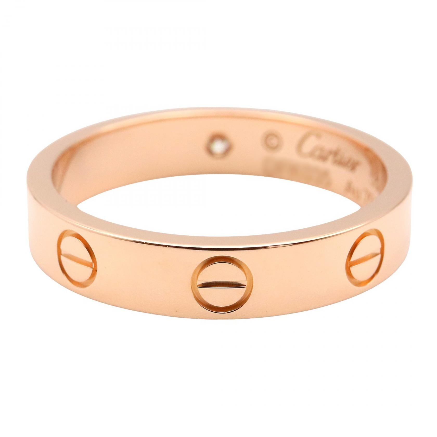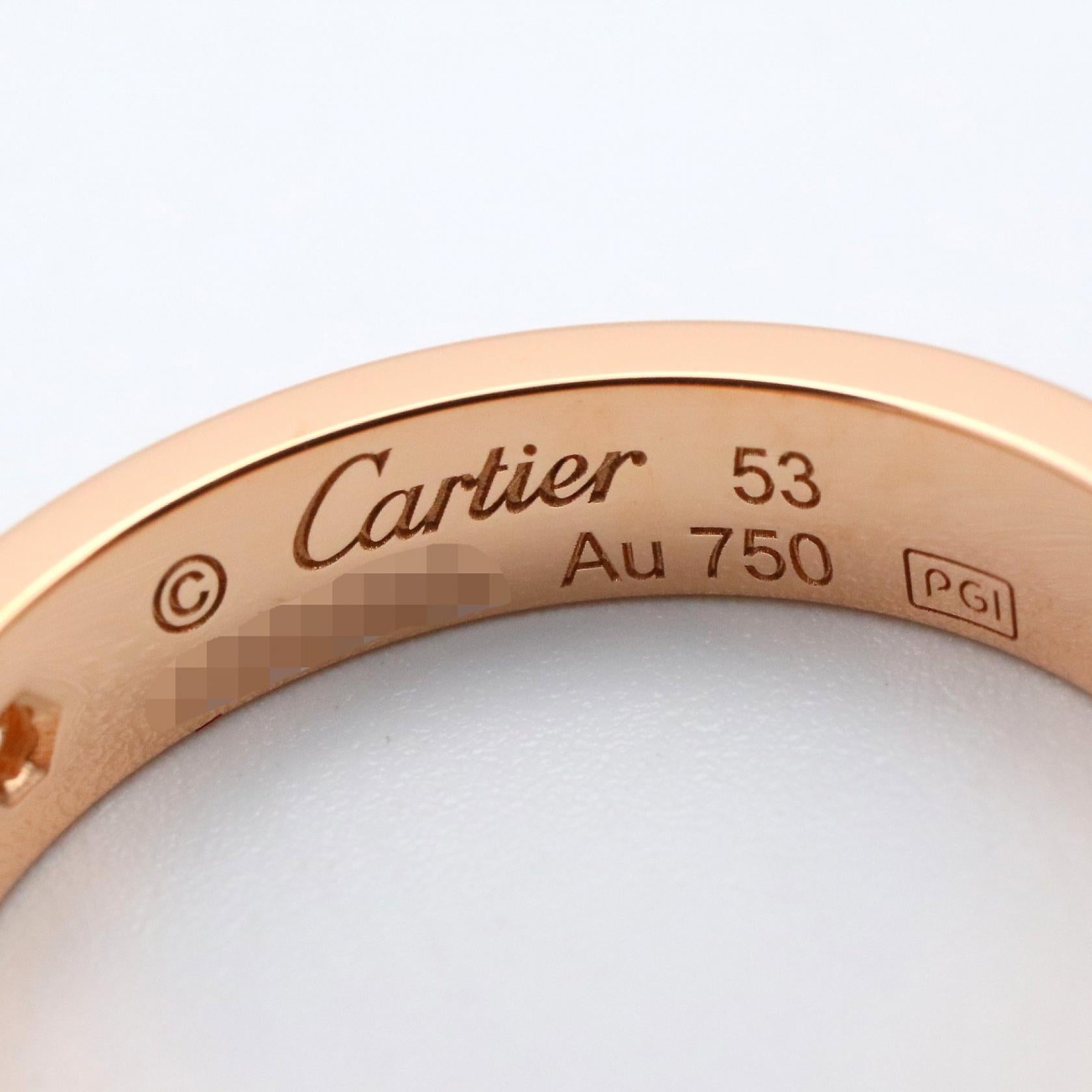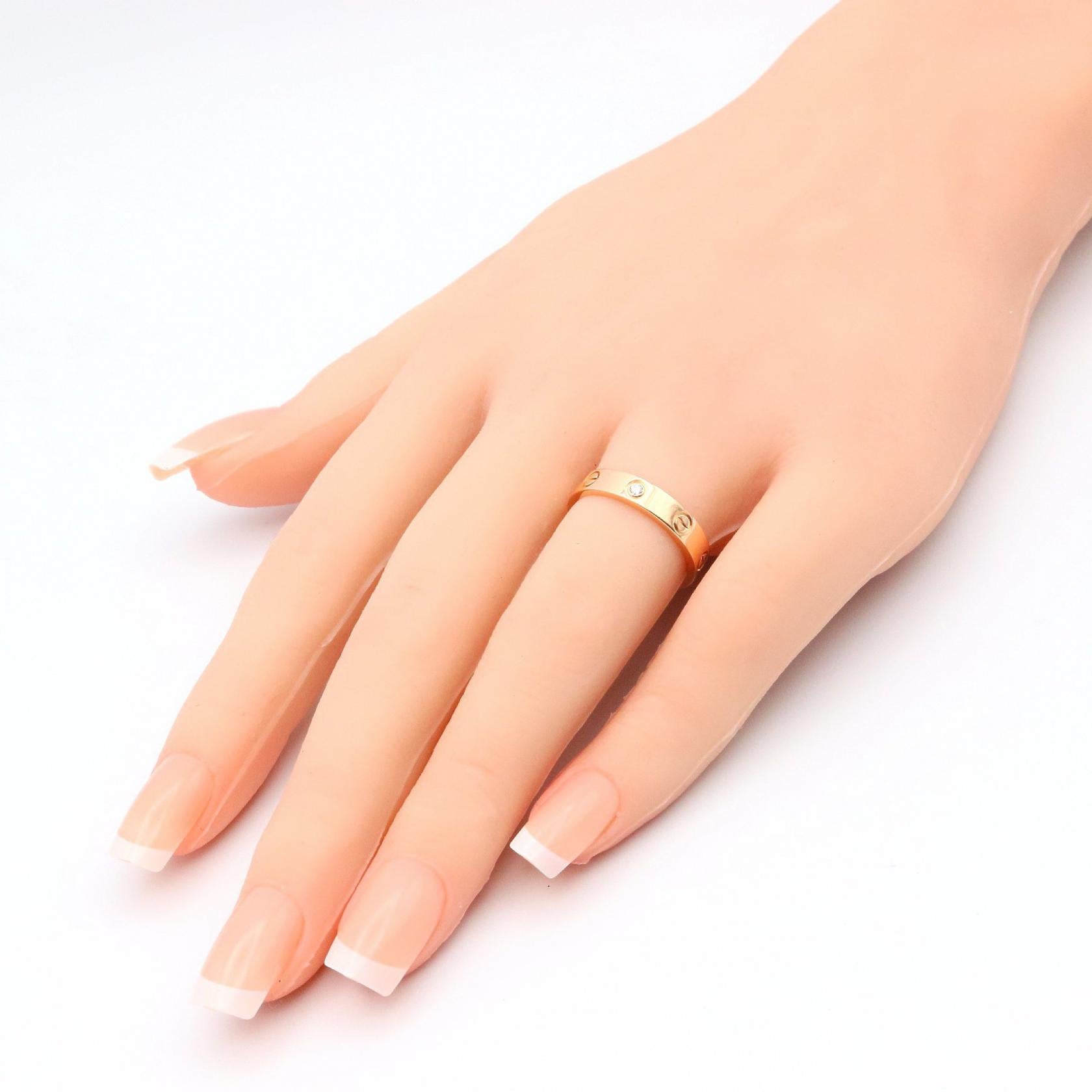 Indulge in the understated elegance of the Cartier Mini Love Ring. Crafted in exquisite Au750 pink gold and adorned with a delicate diamond, this iconic piece whispers luxury. A timeless symbol of commitment and affection, this ring effortlessly complements your everyday style, adding a touch of refined sophistication to every occasion.