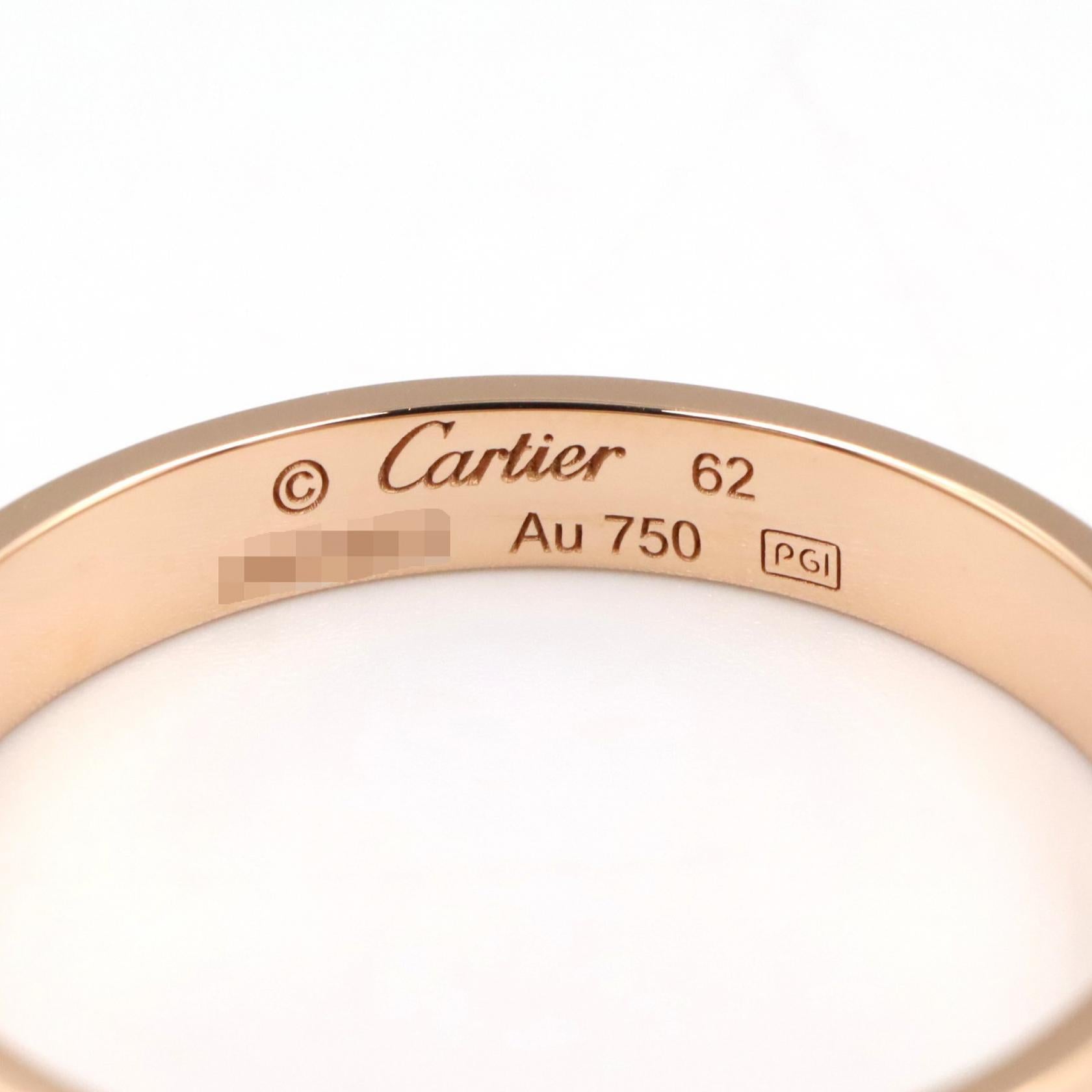 Indulge in timeless elegance with the Cartier Mini Love Ring. Crafted in exquisite pink gold, this delicate band symbolizes enduring love and commitment. Its understated design effortlessly complements your everyday style, adding a touch of luxury to any occasion. A perfect reflection of your sophisticated taste and accomplished life.