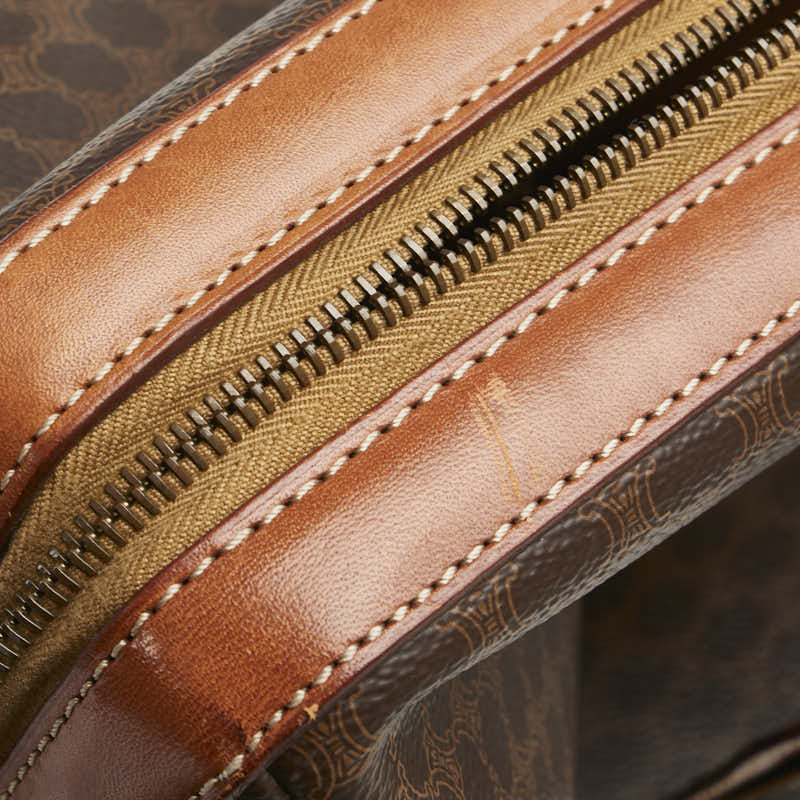 Elevate your everyday with the Celine Macadam Boston Bag. Crafted from durable PVC leather, this iconic bag embodies both practicality and sophisticated style. The classic Macadam pattern adds a touch of timeless elegance, while the spacious interior offers ample room for all your essentials, making it the perfect companion for work, travel, or weekend getaways. Carry it comfortably by the handles for a chic and effortlessly cool look. This Boston Bag is designed for the modern individual who appreciates quality craftsmanship and a seamless blend of fashion and function. A true investment piece that will remain a staple in your wardrobe for years to come.