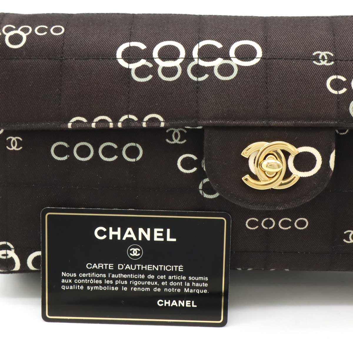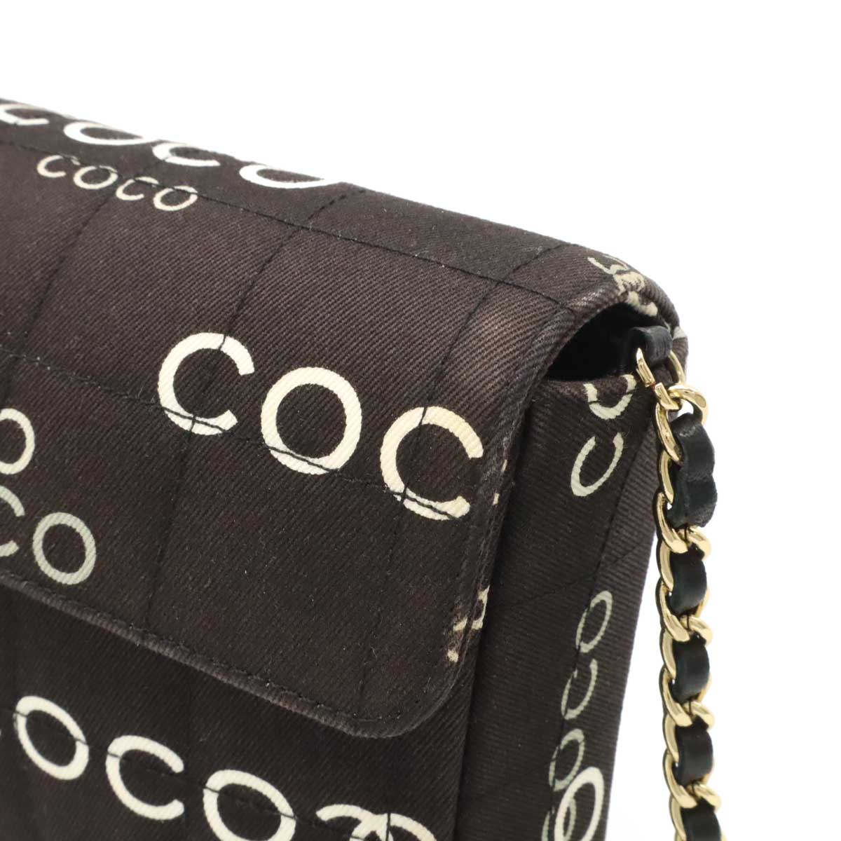 Indulge in timeless elegance with this Chanel Canvas COCO Print Choco Bar Chain Shoulder Bag. A sophisticated accessory that effortlessly blends practicality with iconic style. Perfect for the discerning woman who appreciates luxury and wants to elevate her everyday look. Embrace the allure of Chanel and make a statement wherever you go.