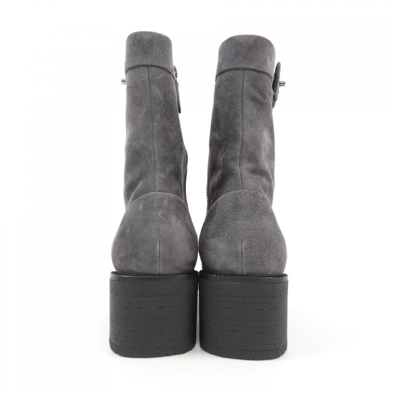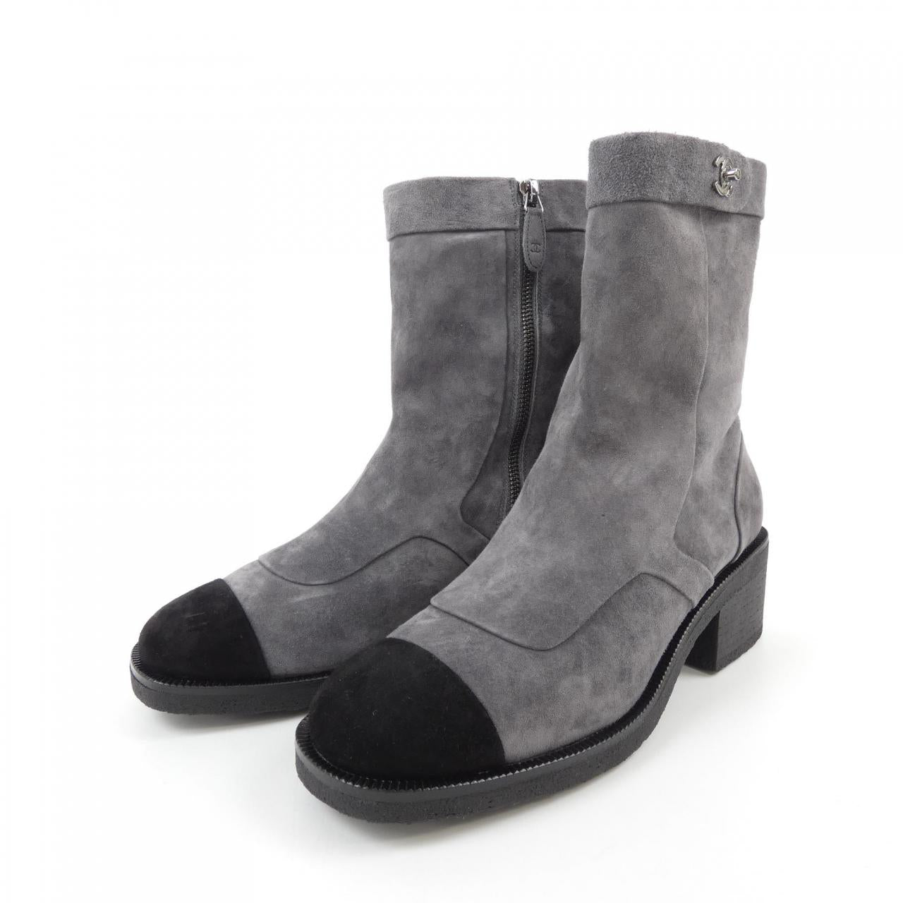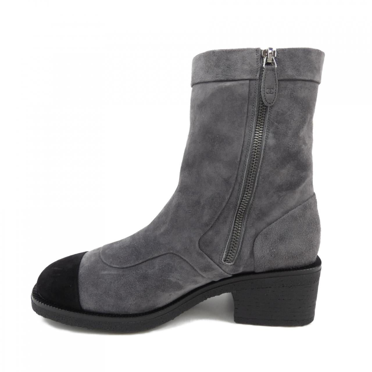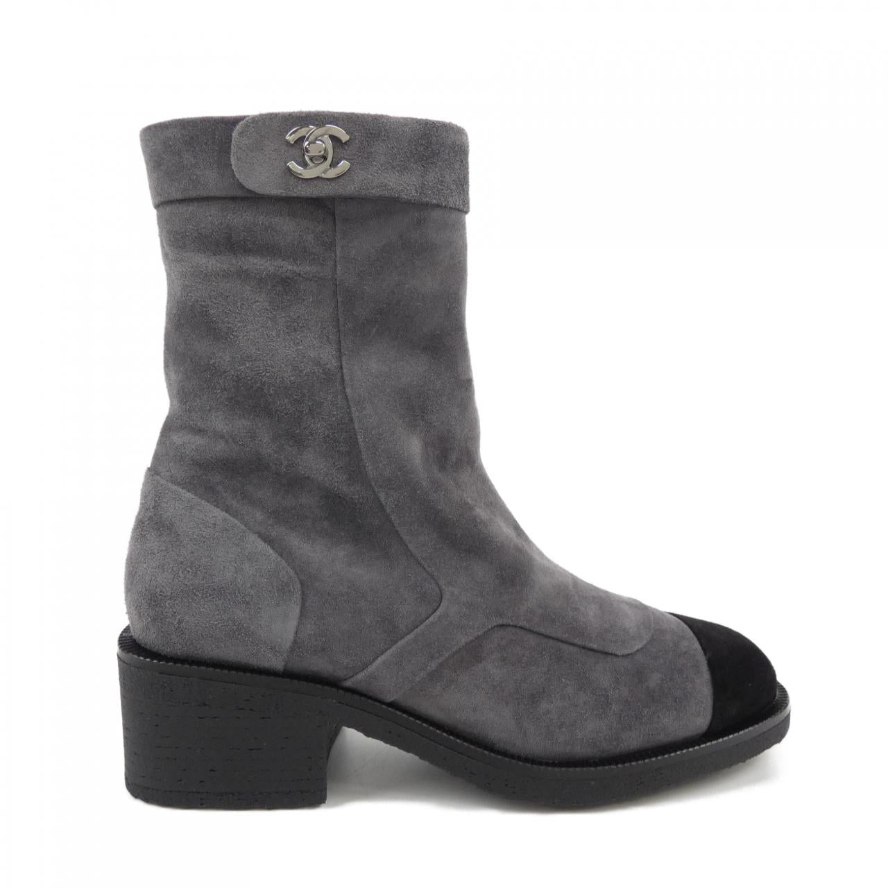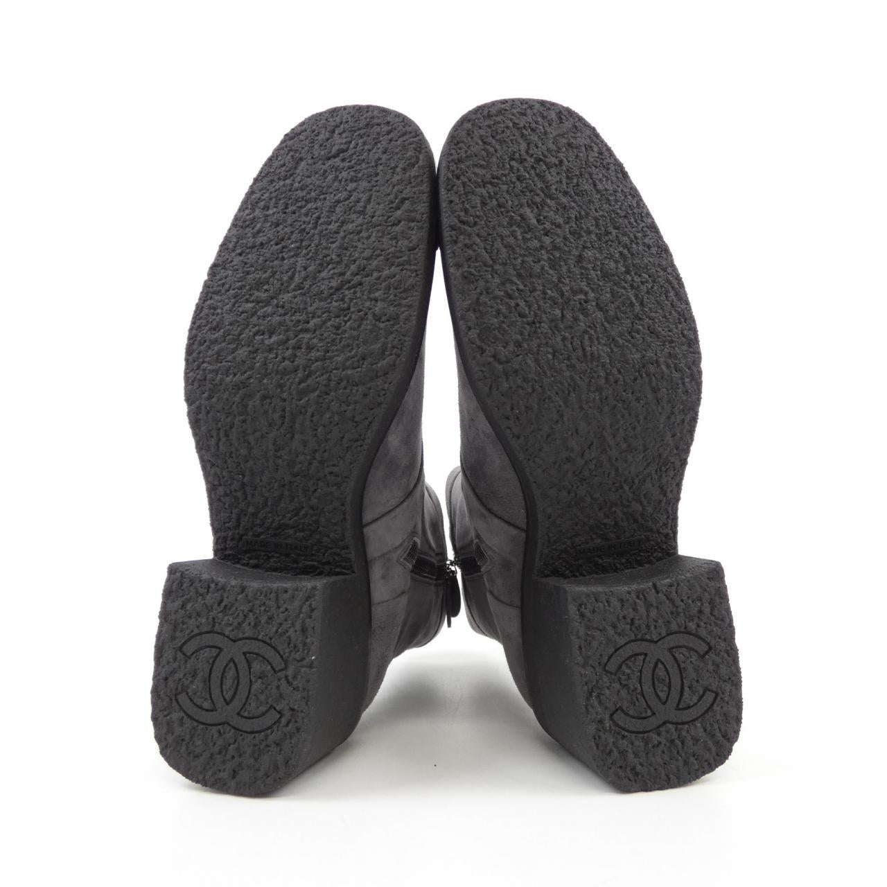 Indulge in timeless elegance with these Chanel suede calfskin boots. Crafted for both comfort and style, they effortlessly elevate your everyday look. The refined design and subtle heel height make them perfect for day-to-night wear, adding a touch of sophisticated luxury to your wardrobe. A versatile and chic investment piece for the discerning woman.