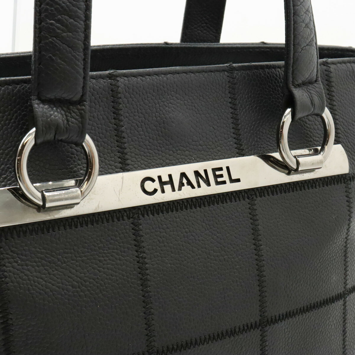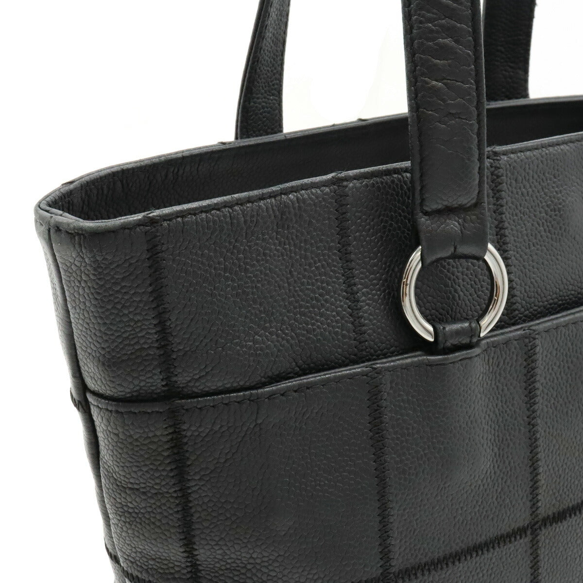 Indulge in timeless elegance with the Chanel Leather Choco Bar Tote. Crafted for the discerning woman, this sophisticated bag seamlessly blends practicality and style. Perfect for daily errands or weekend getaways, its luxurious leather and iconic design elevate any ensemble. A chic investment piece that complements your lifestyle.