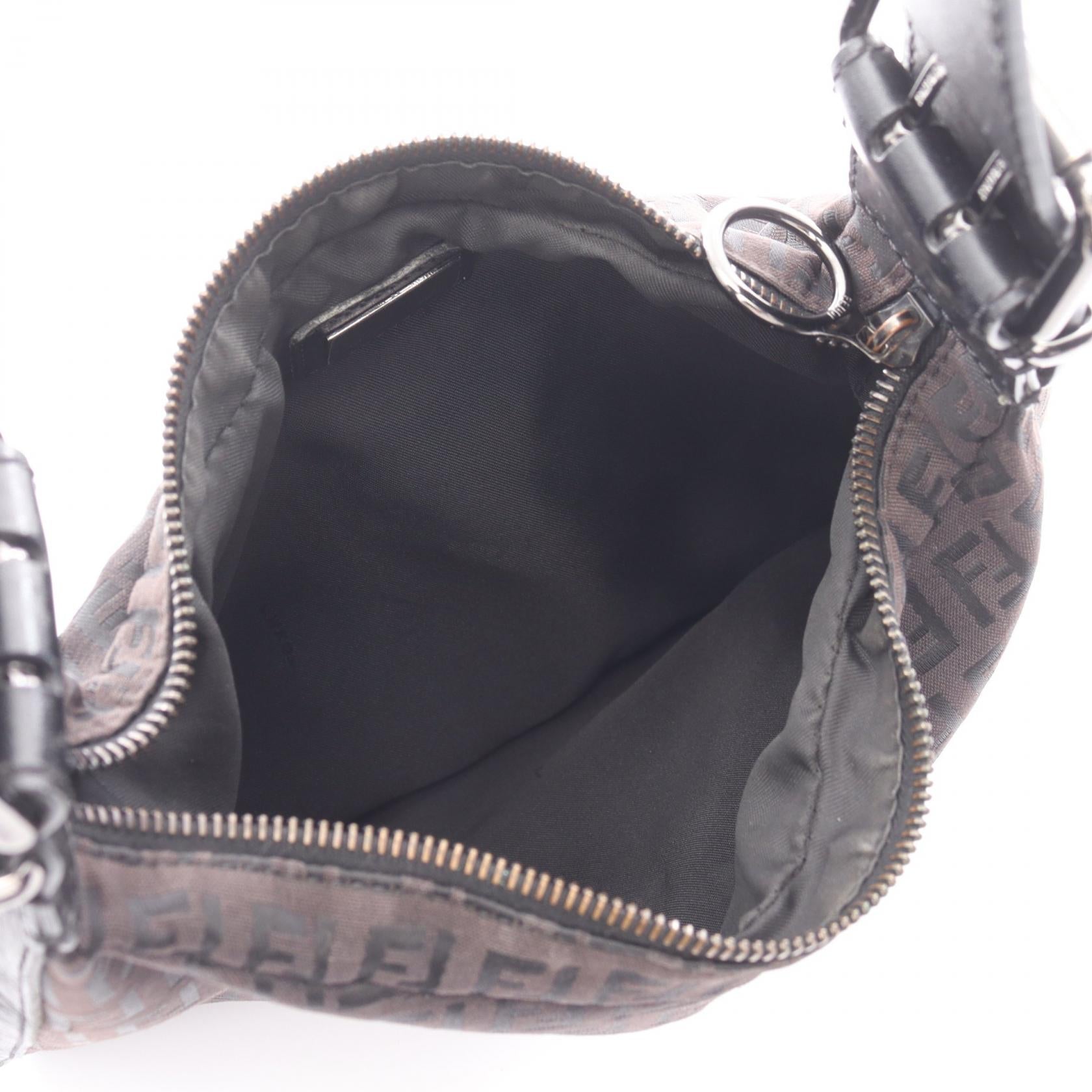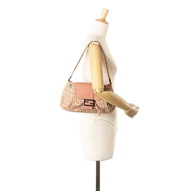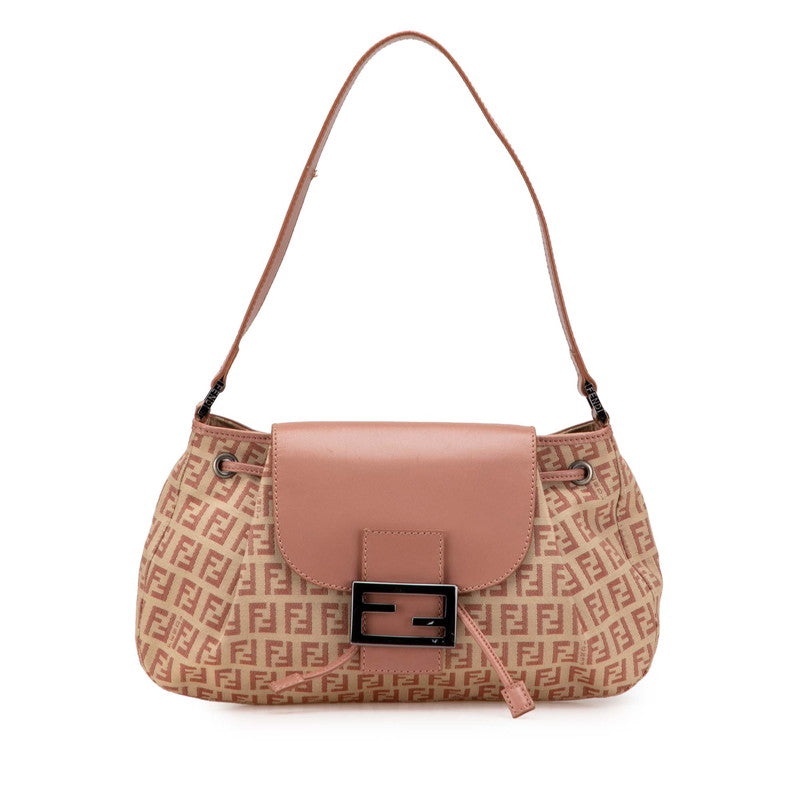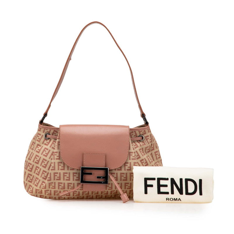 Fendi Zucchino Canvas Leather Shoulder Bag