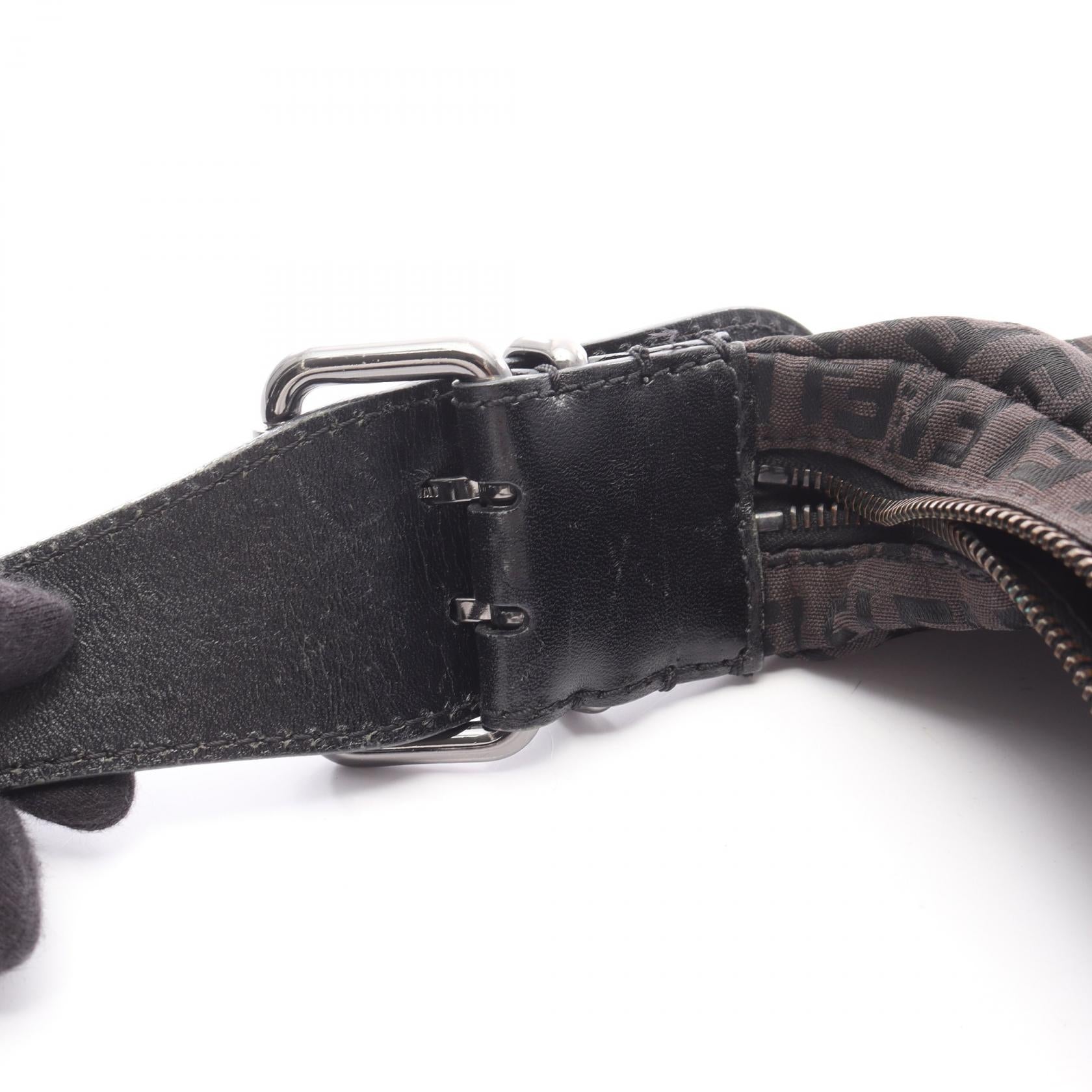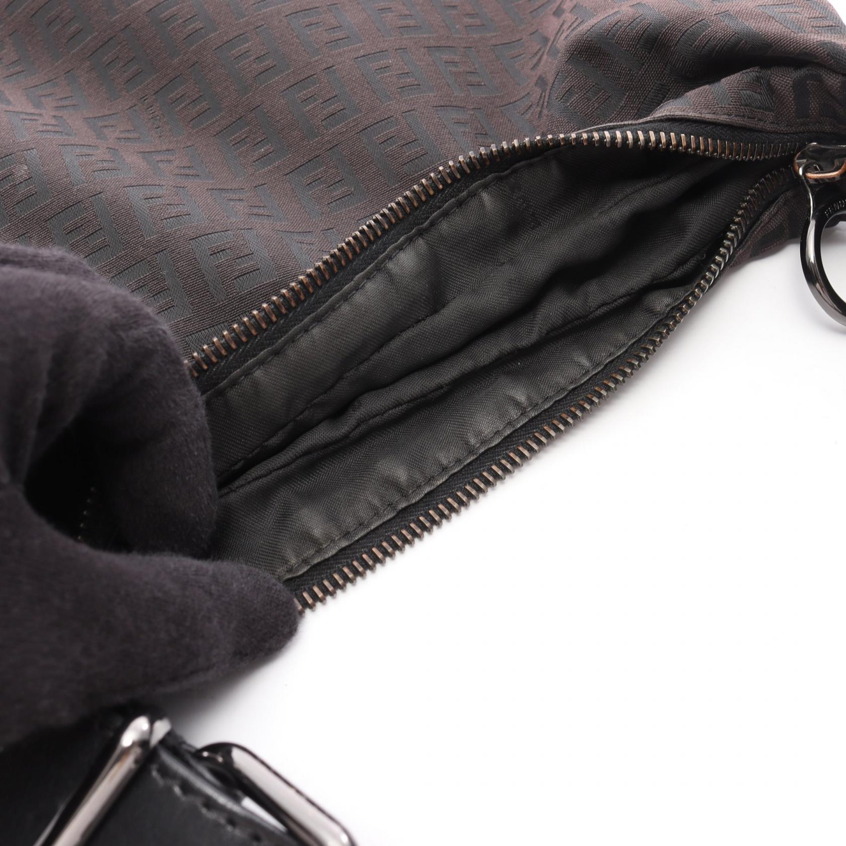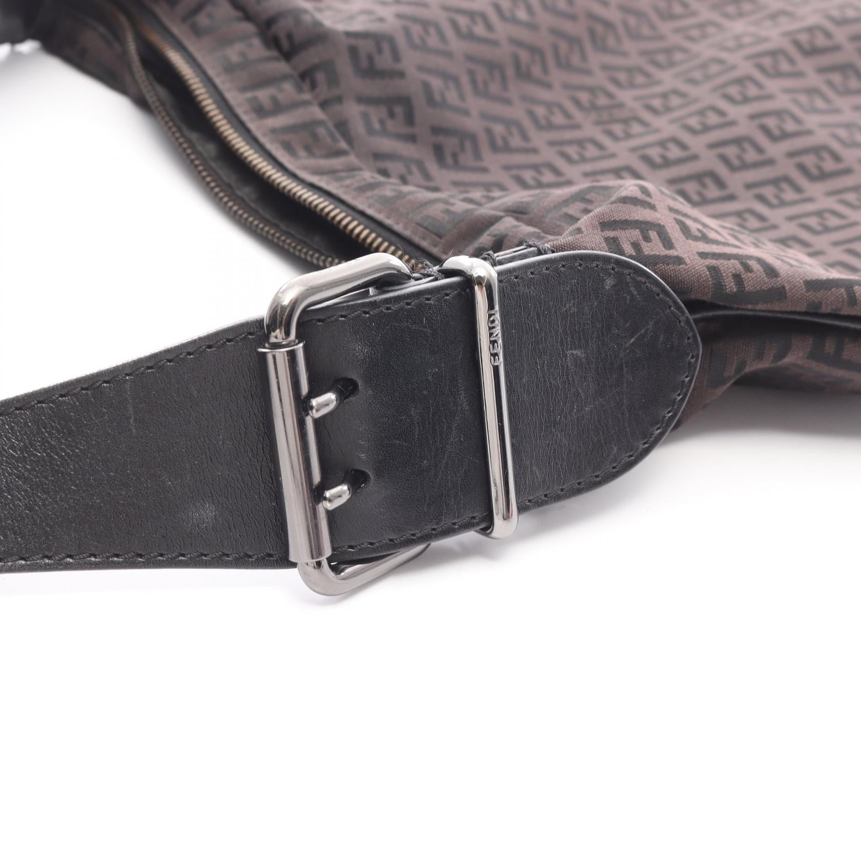 Fendi Zucchino Canvas Leather Shoulder Bag