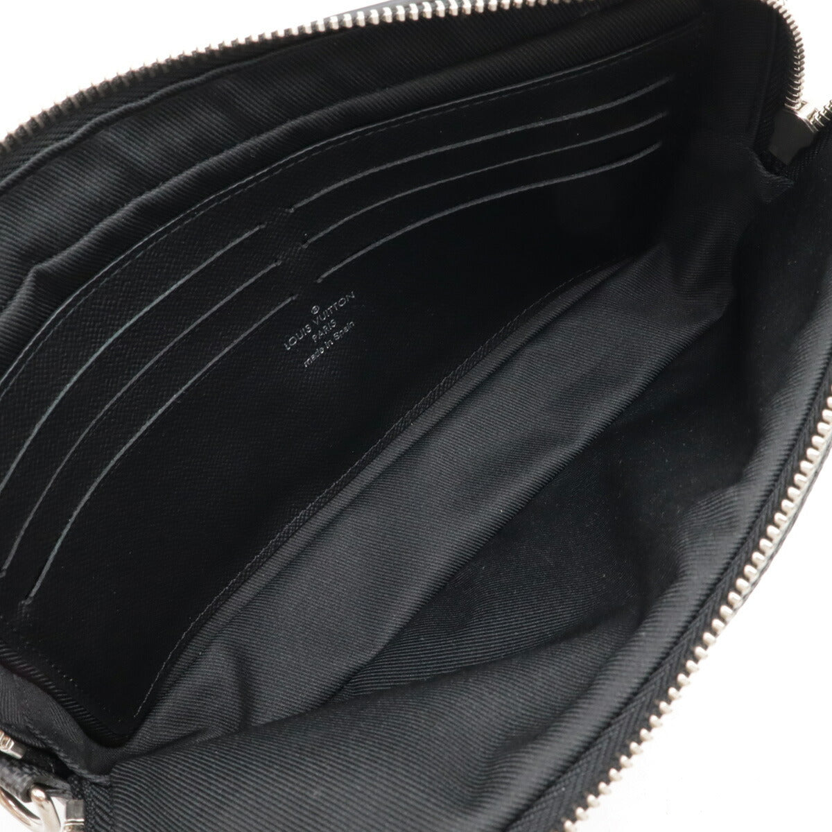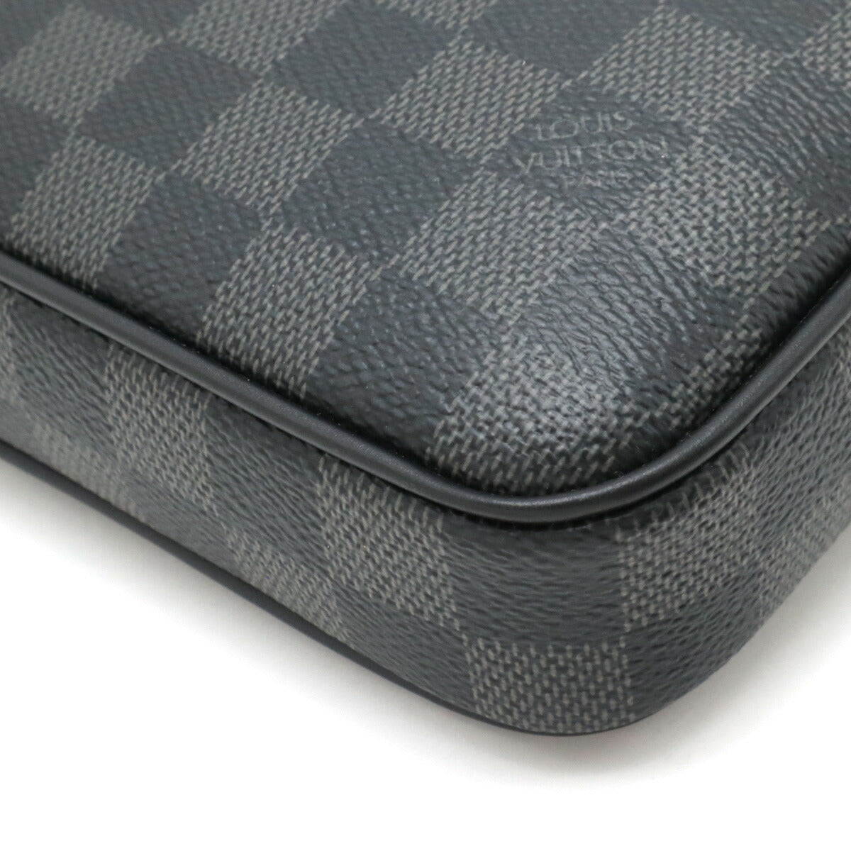 Indulge in timeless sophistication with the Louis Vuitton Alpha Clutch. Crafted in iconic Damier Graphite canvas, this sleek accessory effortlessly blends practicality with luxury. Perfect for the discerning woman, it offers ample space for essentials while exuding understated elegance. Elevate your everyday style with this must-have statement piece.