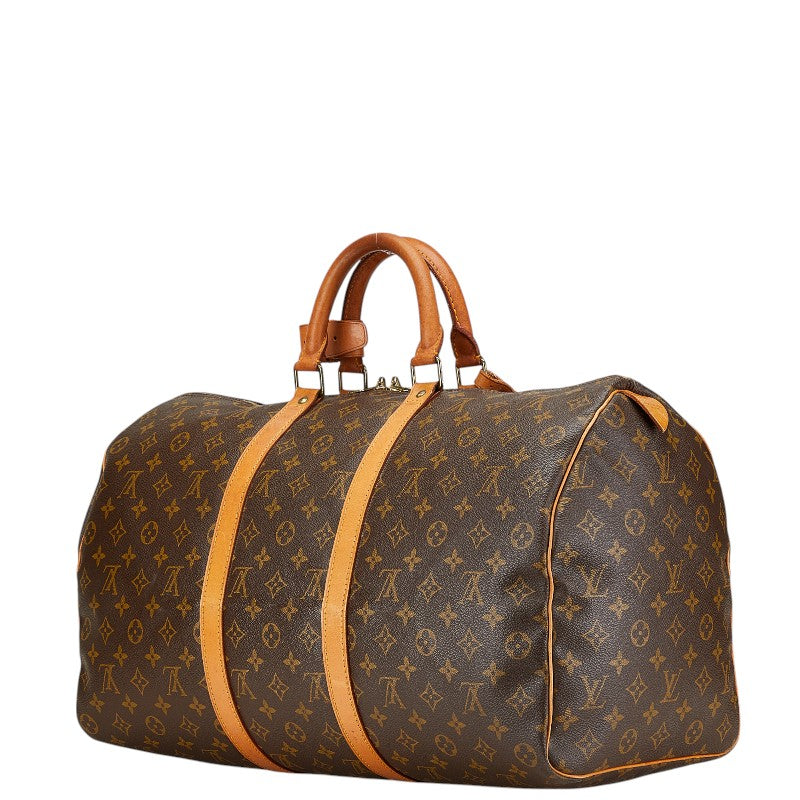 The iconic Louis Vuitton Keepall 50 Monogram Boston Bag. Effortlessly blending practicality with timeless style, this classic carry-on is perfect for weekend getaways or everyday adventures. Crafted with the signature Monogram canvas, it exudes luxury and durability. Its generous interior provides ample space for all your essentials, while the comfortable leather handles offer a secure and stylish grip. A true investment piece that complements any lifestyle.