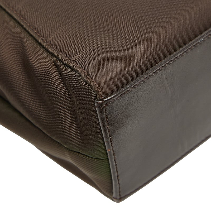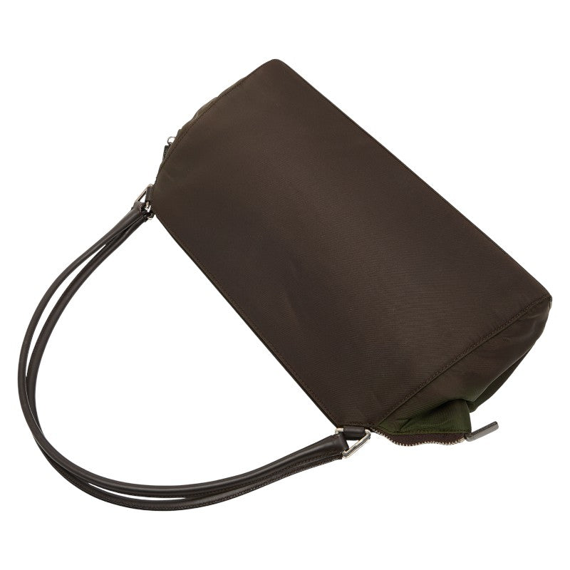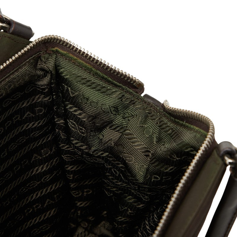 Indulge in effortless sophistication with the Prada Triangle Logo Handbag. Crafted with durable nylon and luxurious leather, this versatile bag is perfect for the modern woman on the go. Its thoughtfully designed interior offers ample space for your daily essentials, blending practicality with timeless Prada style. A chic and functional addition to elevate your everyday look.